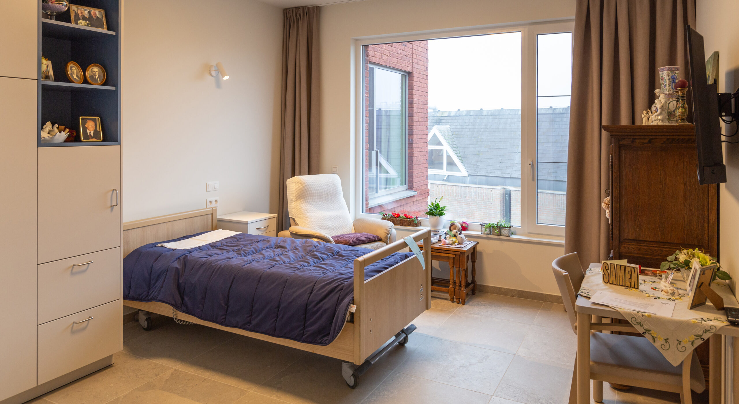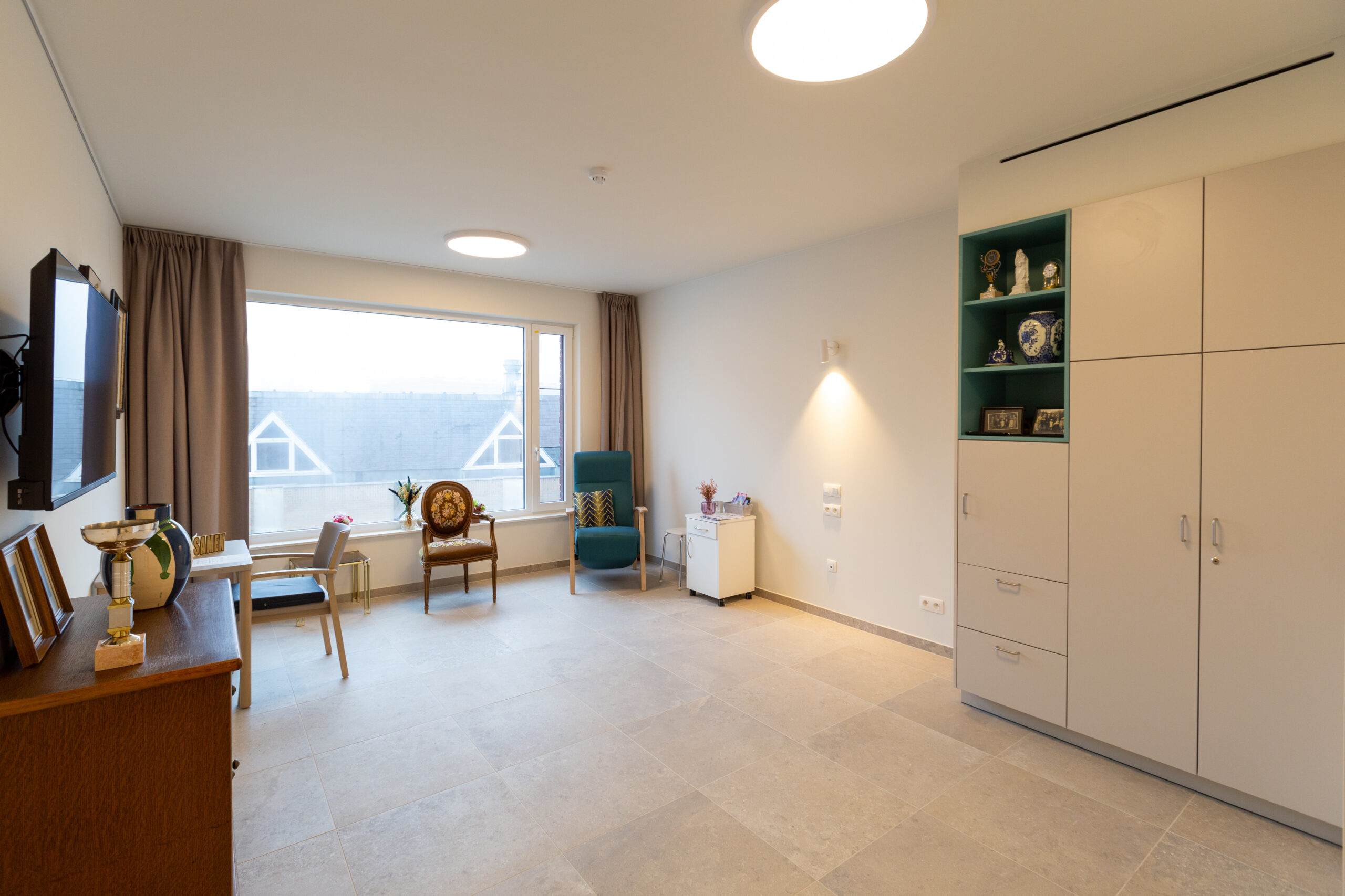 De leefgroepen op de verdiepingen hebben telkens een gelijkaardige organisatie. Er zijn per verdieping twee leefgroepen met telkens 17 kamers met als uitzondering op de +3 waar er één leefgroep van 15 kamers is in plaats van 17 kamers. In totaal zijn er dus 100 kamers verdeeld over 3 bouwlagen. Centraal tussen de 2 leefgroepen ligt er een grote leefruimte die zowel zicht heeft op het groene voorplein als de binnentuin. Deze leefruimte kan door beide leefgroepen gelijktijdig gebruikt worden en heeft toegang tot een drempelloos terras aan de zijde van de binnentuin.