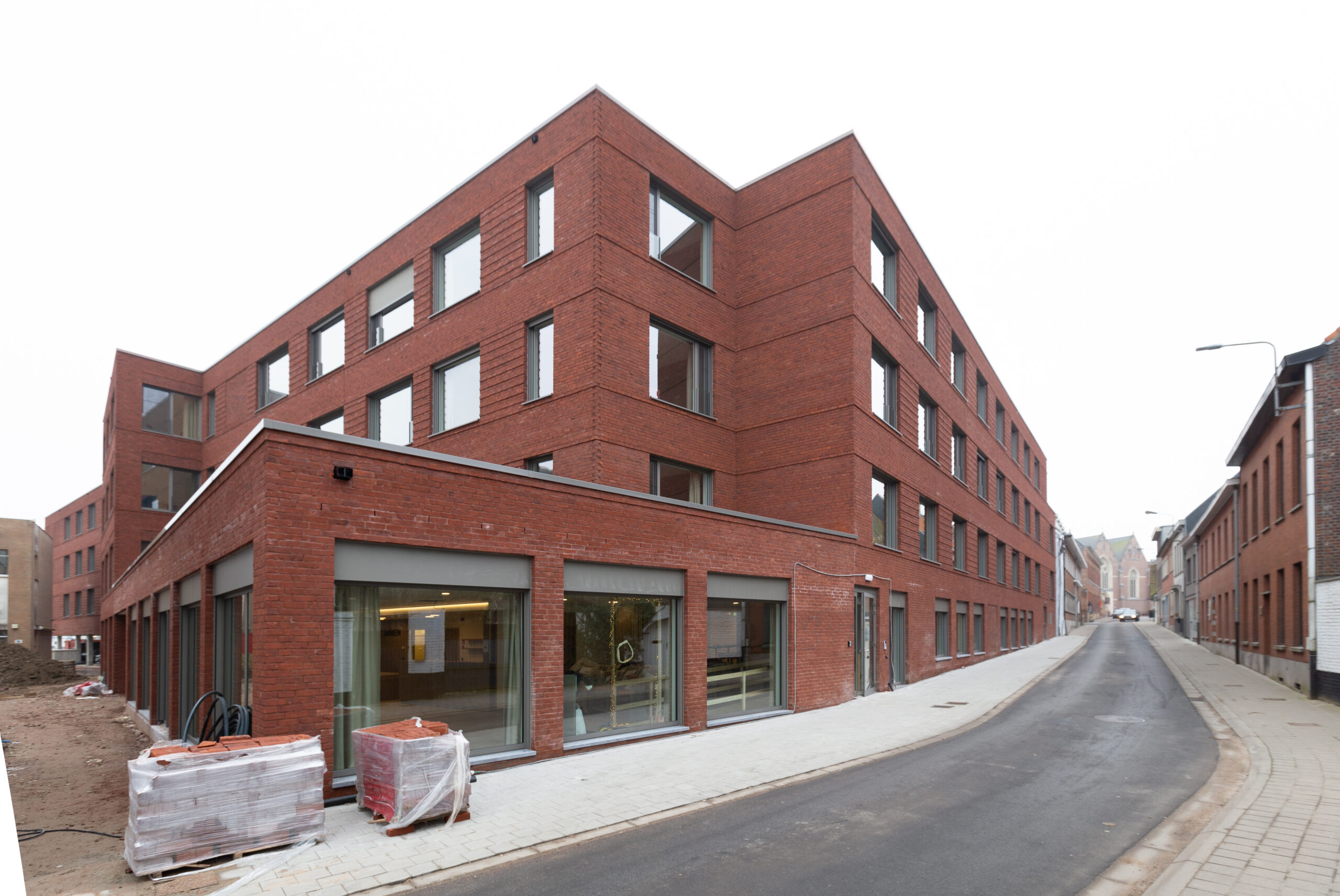 Het nieuwe gebouw bestaat uit 4 bouwlagen waarbij de kamers zich enkel op de verdiepingen bevinden en de publieke functies, administratie en logistiek op het gelijkvloers. De cafetaria zal het hart vormen van het WZC en combineert de functies van onthaal met zitruimte voor de bezoekers en polyvalente ruimte voor bewoners. Ze bevindt zich in een wat vooruitgeschoven volume gelegen langs het groene plein voor het gebouw. Andere publieke functies voor de bewoners zoals het kapsalon, de kiné en sociale dienst liggen in de nabijheid van de cafetaria. De logistieke en administratieve cluster zijn georganiseerd in aparte zones, zij hebben een autonome werking en zijn afsluitbaar voor bewoners en bezoekers.